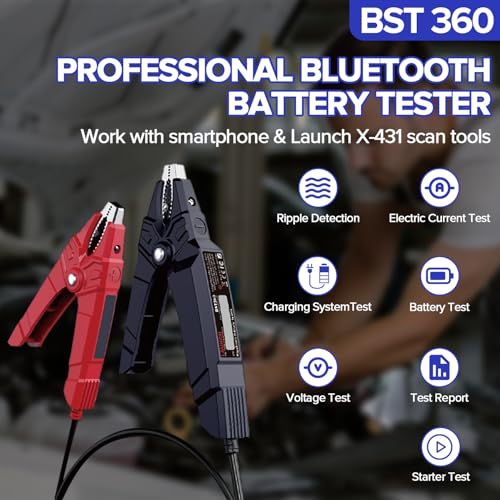 Specification: 2026 Launch Upgraded BST360 6V 12V Car Battery Tester, Bluetooth Battery Load Tester Charging Cranking System Analyzer for Android/iPhone/Launch X431, 100-2000 CCA Alternator Tester Voltmeter