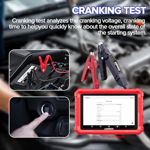 [Battery Health Test]: LAUNCH 12V battery tester is a reliable car battery doctor that can provide a quick scan within seconds and 99.9% accurate battery data like Voltage, Internal Resistance, CCA Value, SOH, SOC to determine the health of the battery and give an analytical basis for the inspection and maintenance.