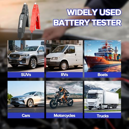 [Wide Application]: BST 360 car battery tester is designed for all 12V batteries including Regular Flooded, AGM Plate, GEL, and EFP. Based on CCA, DIN, JIS, EN, IEC, AH, SAE, BCI standards, the 100-2000 CCA battery analyzer is also compatible with Cars, Motorcycles, Trucks, RVs, ATVs, SUVs, Boats, Yachts, Lawn Mowers, Golf Carts.