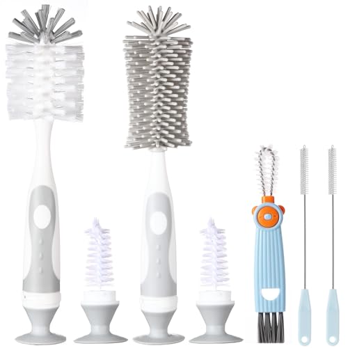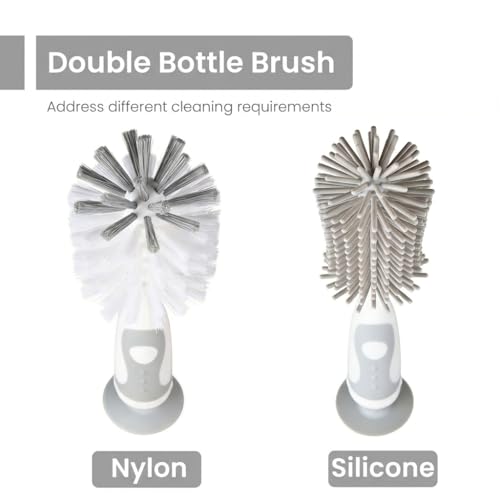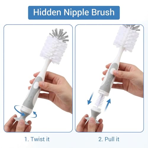 5-in-1 Baby Bottle Cleaner Set, Including Nylon & Silicone Bottle Brush, Cap, Straw & Nipple Brushes, BPA-Free (Grey)