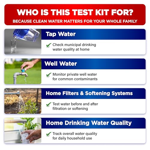 Clear Range: This house water testing kit offers clear, easy to read results and acceptable ranges for all substances. The water contaminant tester delivers clear results on any type of water