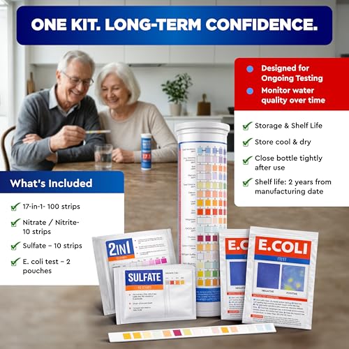 Peace of Mind: This well water test kit comes with a 17-in-1 test strip and 2 separate bacteria tests to check for coliform and e coli. Knowing what’s in the water for peace of mind is easy