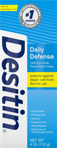 Specification: Desitin Daily Defense Baby Diaper Rash Cream with Zinc Oxide to Treat, Relieve & Prevent diaper rash, Hypoallergenic, Dye-, Phthalate- & Paraben-Free, 4 oz