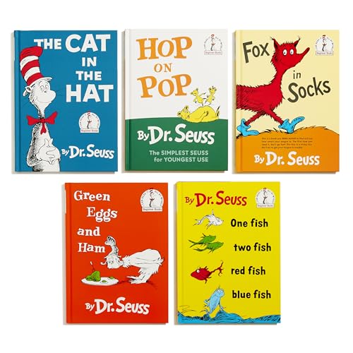 Dr. Seuss’s Beginner Book Boxed Set Collection: The Cat in the Hat; One Fish Two Fish Red Fish Blue Fish; Green Eggs and Ham; Hop on Pop; Fox in Socks Hardcover – Box set, September 22, 2009