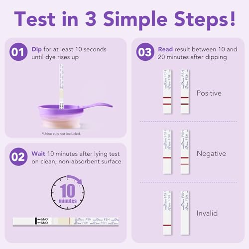 Easy to Use: Sensitivity of 25 mlU/mL. Dip the FSH test into the specimen for 10 seconds, read the result between 10-20 mins. Don’t read results after 30 mins.