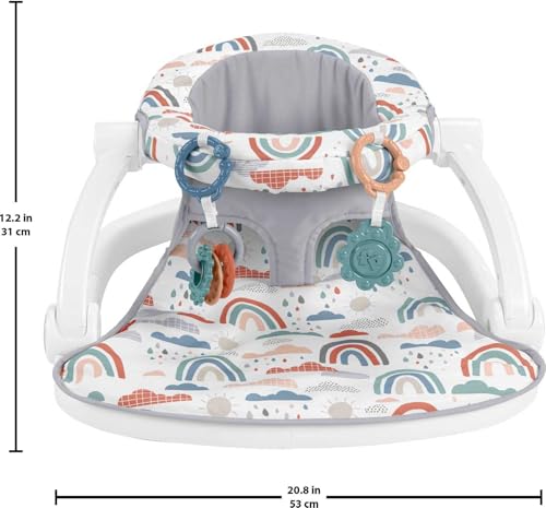 Specification: Fisher-Price Portable Baby Chair Sit-Me-Up Floor Seat with Developmental Toys & Machine Washable Seat Pad, Rainbow Showers