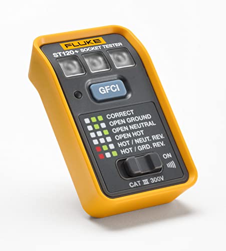 “The ST120+ Socket Tester with a GFCI test button and beeper from Fluke is the perfect tester for electricians and electrical inspectors, home inspectors and technicians who need to verify the correct wiring of outlets. The bright, easy to see LEDs let you know if an outlet is miswired and the integrated GFCI test button gives you peace of mind by allowing you to verify the proper operation of GFCI equipped outlets. The addition of a switchable beeper makes the ST120+ even more capable. In addition to providing an additional level of safety by beeping whenever voltage is present – even with a miswired outlet – the beeper also helps you save time identifying circuit breakers. Just plug in the tester into an outlet and make sure the beeper is switched on. Then, when you flip the corresponding circuit breaker for that outlet, the beeper will turn on or off, letting you know that you found the right breaker. These features packed into the compact yet rugged design of the ST120+ make this the perfect tester to take to every job”.