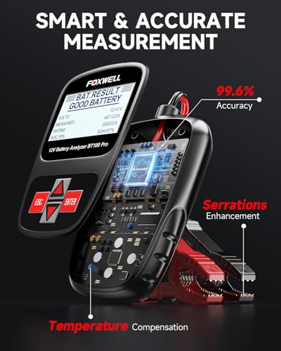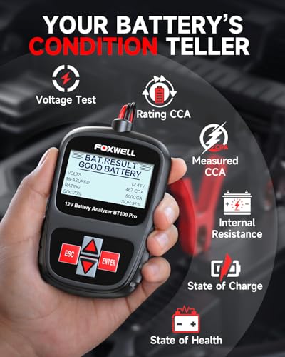 Specification: FOXWELL BT100 Pro Car Battery Tester, 12V Battery Load Tester, 100-1100CCA Automotive Digital Battery Analyzer for Car Truck Motorcycle SUV Boat Marine RV & Pickup