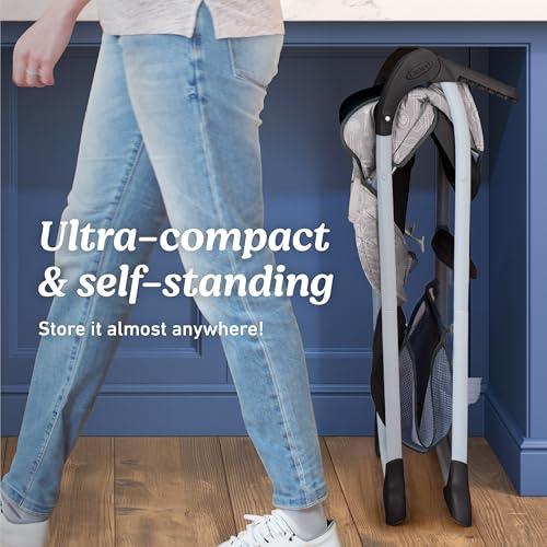 The Graco Slim Snacker Highchair is the ultra-fast folding highchair with a one-hand, one-second fold. Once folded, it’s ultra-compact, so it fits in small spaces and is self-standing for easy storage. Cleaning this slim highchair is a snap, too–just wipe the seat pad down to keep your child’s dining space tidy. A large mesh storage basket is perfect for storing extra bibs and wipes, and a full-size cup holder keeps their cup in place. The 3-position reclining seat, footrest, and seat pad keep your child comfy during meals and snacks.