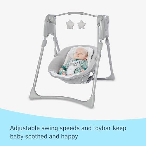 Graco Slim Spaces Compact Baby Swing, Space Saving Portable Bay Swing with Height Adjustable Legs & Soft Toys, Reign