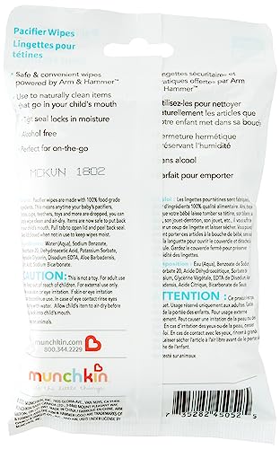 Specification: Munchkin Arm & Hammer Pacifier Wipes – Safely Cleans Breast Pump Parts and Feeding Essentials for Baby and Toddler, 1 Pack, 36 Wipes
