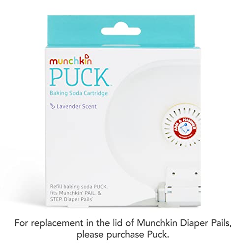 Give your sense peace-of-mind when you grab an extra lavender-scented baking soda cartridge, which works with both the Munchkin STEP (model number 15901) and PAIL (model number 15900) diaper pails. Every PUCK cartridge comes packed with a punch of lavender-scented baking soda, powered by Arm & Hammer. Whenever you’re not using your STEP or PAIL diaper pail, fear not! PUCK works while the pails’ lids are closed to ensure everything remains fresh and free of unwanted odors. It’s recommended that you replace PUCK every 60-90 days for best results, and it can even be used beyond the pail (e.g. in garbage cans, diaper bags, etc.)!