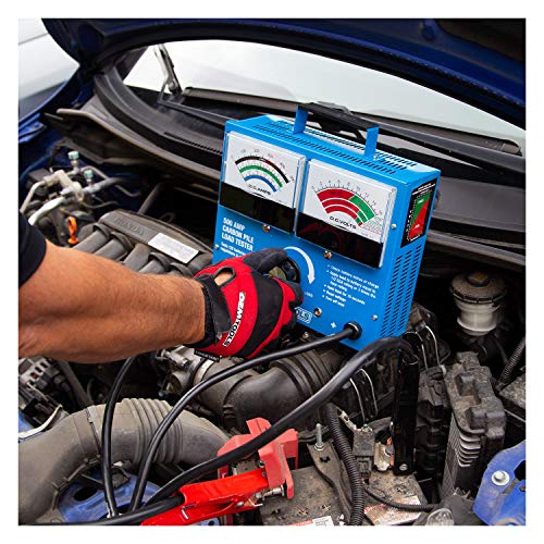 Easy To Use: This alternator and battery tester features large, easy-to-read gauges; Dual gauges on this 12 volt car battery load tester make it easy to manage the testing process and observe the results; 500 amp load tester simplifies starter and alternator assessment