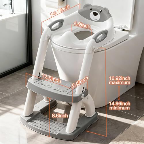 Specification: Potty Training Seat, SKYROKU Upgrade Toddler Toilet Seat for Kids Boys Girls, 2 in 1 Potty Training Toilet, Splash Guard Anti-Slip Pad Step Stool,New Sector-Shape Stabilized Base (8899+Grey)