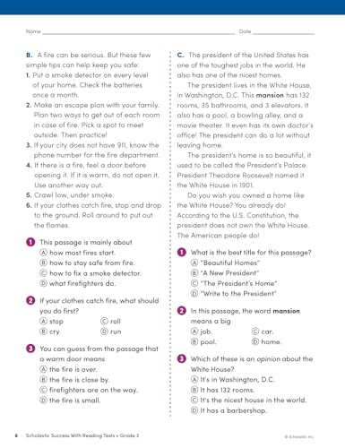 Scholastic Success with Reading Tests Grade 3 Workbook Paperback – February 1, 2022