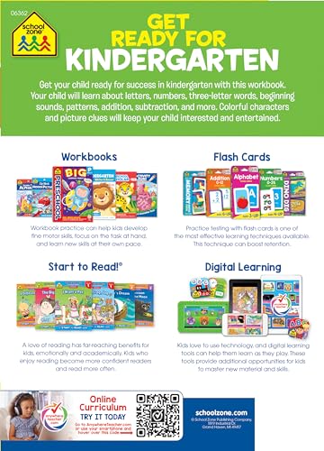 School Zone Get Ready for Kindergarten Workbook: 256 Pages, Alphabet, ABCs, Letters, Tracing, Printing, Numbers 0-20, Early Math, Shapes, Patterns, Comparing, Ages 5-6 Paperback – July 9, 2019