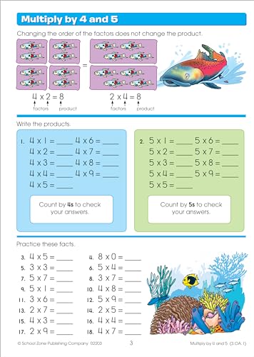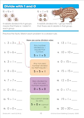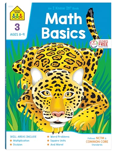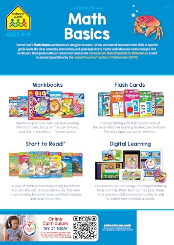 Specification: School Zone Math Basics 3 Workbook: 64 Pages, 3rd Grade, Multiplication, Division, Word Problems, Place Value, Fractions, Ages 8-9 (I Know It! Book Series) Paperback – July 1, 2019