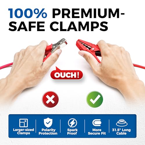 [Ergonomic Features] To help you rapidly determine the health of the battery, this load battery tester is built with three different colors of LEDs. It’s easy to use because it operates through a menu system. Additionally, for a reliable and secure connection during the testing process, premium-quality copper clamps have polarity reverse prevention and spark proof features.