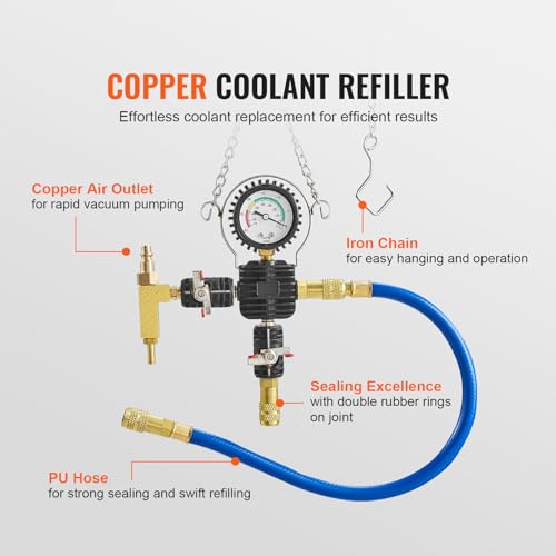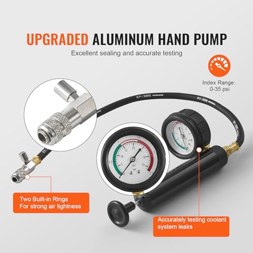Specification: VEVOR 28 pcs Universal Radiator Pressure Tester Kit, Coolant Pressure Tester Kit with Manual Pump and Color-Coded Test Caps, Coolant Vacuum Refill kit for Cars Motorcycles Trucks Cooling System