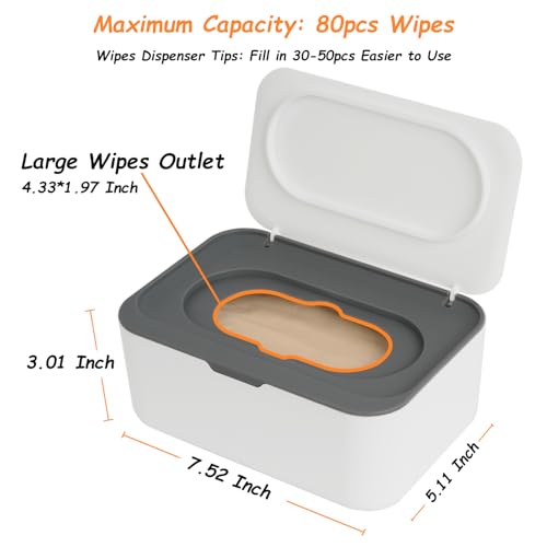 Capacity – 80 Wipes: The top concave design of the lid is suitable for placing all kinds of small life items or other baby items. Up to 7.52*5.11*3.01 inches. Recommended to fill in 30-50 pcs wipes for easier use